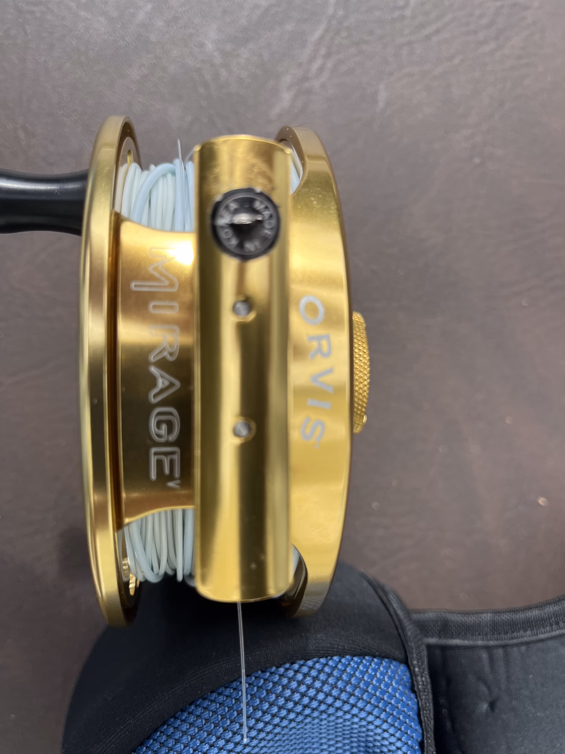 Orvis Mirage V, compatible with 9-wt. Including backing and fly line, case.