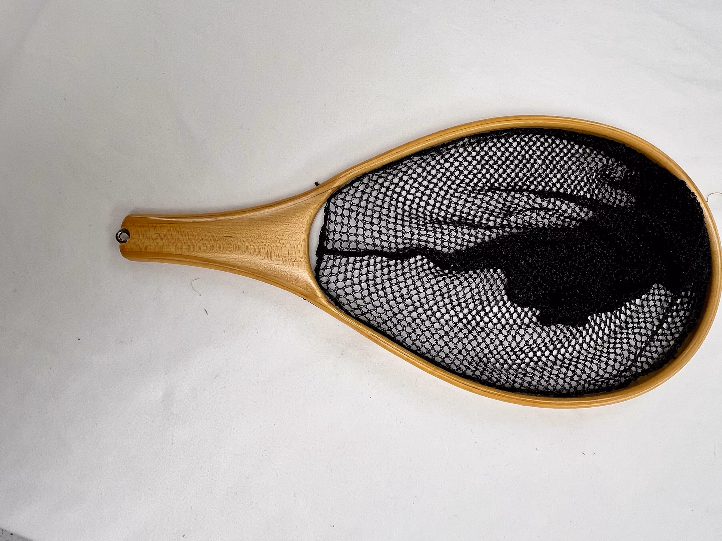 Small vintage trout fly fishing dip net. Wooden trout dip net black mesh netting and brass eyelet hanger. No scratches or gouges. Has a satin finish. Overall excellent condition. Net area measures 8” x12”, overall size is 9” X 16”. Asking price $75. Shipping to lower 48 only.